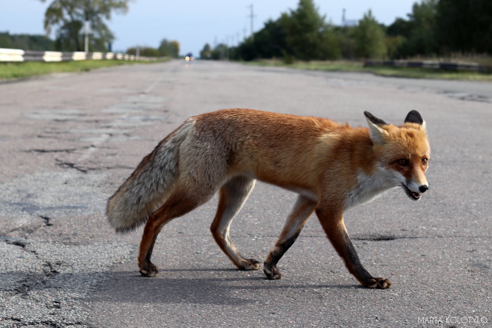 Чорнобильська зона відчуження – це природний заповідник, де відновилася популяція тварин, що були на межі зникненни. Так, тут живуть вовки, рисі, дикі коні, у річці плавають гігантські соми. І це все не через радіацію, а тому, що втручання людини фактично не відбувається. Жодних двоголових мутантів з трьома лапами. Тільки прекрасна природа, багата і недоторкана. Ми зупинилися на шляху до Прип’яті, щоб погодувати Семена - вже популярного серед туристів лиса, що завжди чекає біля дороги на смаколики, і бере їх просто із рук.